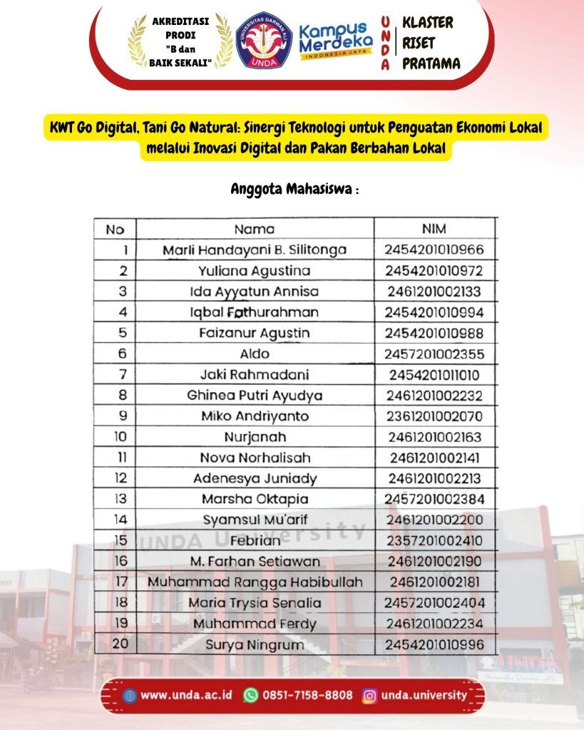 Keberhasilan tim UNDA memperoleh hibah ini menjadi bukti nyata komitmen universitas dalam mengembangkan riset terapan dan pengabdian masyarakat yang berdampak langsung pada pembangunan ekonomi lokal.
