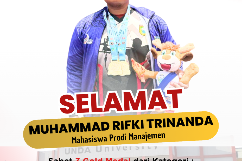 Sampit, 9 November 2025 – Prestasi gemilang kembali ditorehkan oleh mahasiswa Universitas Darwan Ali (UNDA). Muhammad Rifki Trinanda, mahasiswa Program Studi Manajemen, berhasil menyabet tiga medali emas (Gold Medal) pada ajang Pekan Olahraga Provinsi (Porprov) Cabang Olahraga Panahan yang digelar di Kalimantan Selatan tahun 2025.