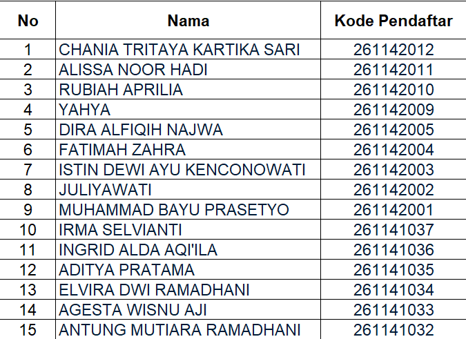 Daftar Peserta Lulus Jalur Prestasi
