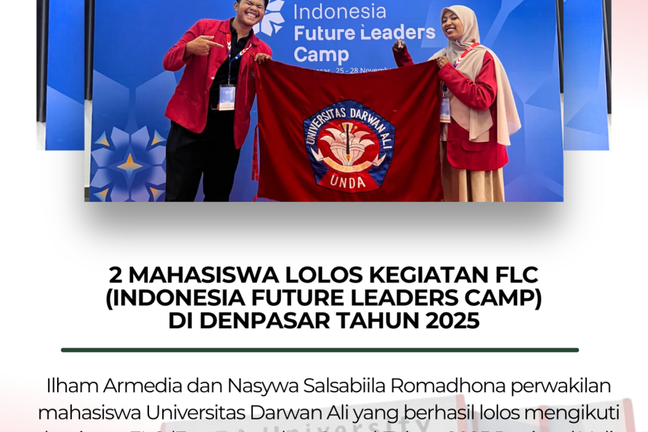 Universitas Darwan Ali (UNDA) kembali menorehkan prestasi membanggakan melalui dua mahasiswanya yang berhasil lolos mengikuti kegiatan Indonesia Future Leaders Camp (FLC) 2025. Mahasiswa tersebut adalah… Selengkapnya »Dua Mahasiswa UNDA Lolos Kegiatan Indonesia Future Leaders Camp (FLC) 2025 di Denpasar